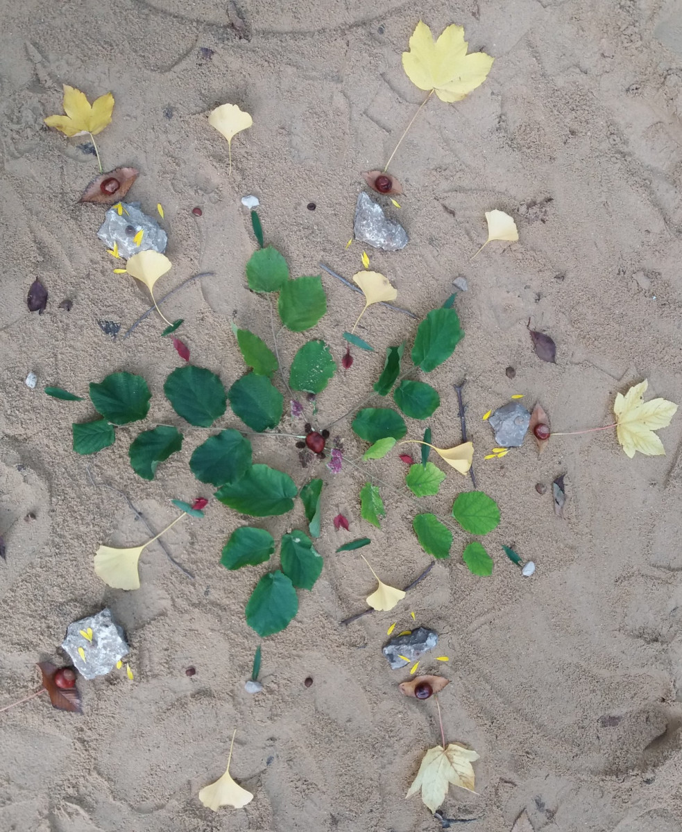 Ein relativ warmer Oktobermorgen lud die Dritt- und Viertklässler der Sonnensteine am Freitag in den herbstreichen Garten der SteinMalEins Grundschule in Lobeda zu sich ein. Bedächtig legten die neun Schülerinnen und Schüler mit Naturmaterialien Mandalas im Sand, um anschließend über den Prozess und ihre damit einhergehenden Gefühle zu reflektieren: ‚Konnte ich mich auf das Legen konzentrieren? Was hat mich abgelenkt? Was musste ich aushalten? Was habe ich aus einer missglückten Handlung gemacht? Was fand ich überraschend? …‘… waren ein paar Gesprächsanlässe im Nachhinein, welche dann auch auf andere Handlungen bzw. Probleme im Leben der Kinder übertragen und erörtert wurden. Nach fast einer Stunde Achtsamkeit im Herbst waren jedoch alle wieder froh, zum Frühstück im warmen Stammgruppenraum eine Tasse heißen Tee genießen zu können. Dort konnten die inzwischen entstandenen Kunstwerke der Erst- und Zweitklässler bestaunt werden. Bunte, mit Wachsmalstiften abgepauste Blätterhaufen bringen nun die herbstliche Farbenpracht in den Raum und lustige Blätterfiguren erwecken das totgeglaubte Laub zu neuem Leben. In den nächsten Wochen wird es bei den Sonnensteinen noch intensiver um Jahreszeiten, Wetter und die Bestimmung von Sträuchern und Bäumen gehen. Falls es dazu eine/n ‚Experten/in‘ gelüstet sich mit einzubringen, sei er/sie hiermit herzlichst eingeladen :)!