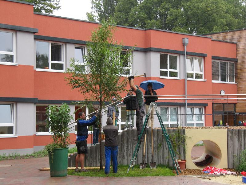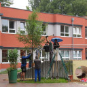 Gepflanzt wurden die Bäume vom Pflanzenhof Zöthen, wobei Anlieferung und Baumsetzen im Regen kostenlos waren! Herzlichen Dank dafür wie auch an die vielen Unterstützer_innen, die u.a. beim Spendenlauf Geld gegeben oder uns Materialien gespendet haben.