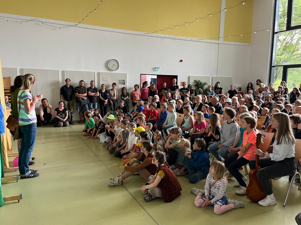 Das gehört zu den Höhepunkten in unserem Schuljahr und dementsprechend viel Mühe und Liebe flossen in die Vorbereitungen. Es gab eine Mitbringtombola, ein gemeinsames Büffet, Stationen wie Riesenseifenblasen, Button herstellen, Dosenschießen, Kinderschminken, Fußball, eine Kunstausstellung u.u.u. Gestartet ist unser Fest mit einer Aufführung der Theater-AG. Das Stück »Talent zur Freundschaft« erzählte allen großen und kleinen Zuschauer*innen, dass für eine Freundschaft keine großen Talente oder Fähigkeiten nötig sind, sondern nur das Herz am richtigen Fleck. Beim anschließenden Fest auf dem Schulhof tummelten sich Grundschüler*innen, Geschwisterkinder, Eltern und Pädagog*innen und nutzten die Zeit, um das vergangene Schuljahr Revue passieren zu lassen.