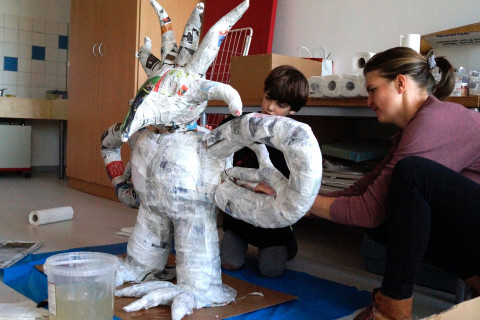 Wie bereits angekündigt arbeiten die Schüler_innen der SteinMalEins im Paradies an ihrer Figur, dessen Name noch gefunden werden möchte. Im Kunstprojekt ” Nikis Welt” tauchen sie in die vielfältige Welt der französischen Künstlerin Niki de Saint Phalle ein. Die Achate und Tigeraugen des dritten und vierten Jahrganges wählten sich in ihrem Stammgruppen in Teams ein, um in kleinen Gruppen ihre Figur gemeinsam zu kleben, formen und streichen. Unterstützung bekommen die Schüler_innen und Pädagog_innen von Julia Kehmann, Museumspädagogin des Stadtmuseums Göhre. Vielen Dank Julia:) Bald wieder mehr dazu, bleibt gespannt. Vielleicht begegnet ihr unserer dann fröhlichen, bunten Figur in der Wechselausstellung im Städtische Museum Jena vom 01. Dezember bis 08. April 2018 “Niki de Saint Phalle und das Theater”.
