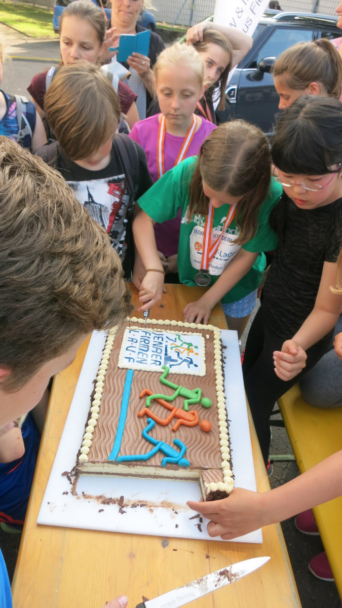 Die UniverSaale Freie Gesamtschule konnte sich sogar den zweiten PLatz erlaufen und durfte sich stolz über ca. 700 € und eine Siegertorte freuen. Lasst es Euch schmecken.
