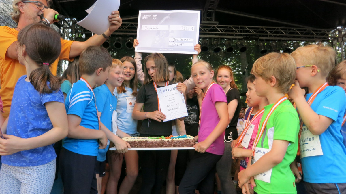 Die Freie Ganztagsgrundschule SteinMalEins schaffte es, sich den dritten Platz unter den Jenaer Schulen zu erlaufen und erhielt ca. 500 € für ihren Lauf. Juhu.