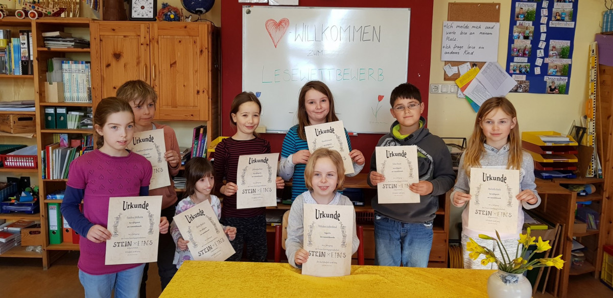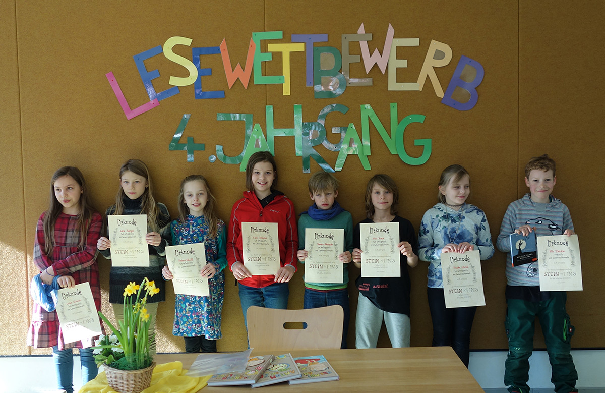 Am 26. Februar lag Aufregung in der Luft. Bücher wurden gedrückt, geherzt, Eselsohren liebevoll nachgefühlt und dann durften die Stammgruppensieger_innen des dritten und vierten Jahrganges endlich ihre Lieblingsbücher vorstellen. Die Schüler_innen lasen ein Stück aus einem selbstgewählten Lieblingsbuch und zusätzlich einen unbekannten Text. Wer von der Schüler_innen- und Erwachsenenjury am höchsten bewertet wurde, darf beim Stadtentscheid die Freie Ganztagsgrundschule SteinMalEins vertreten.