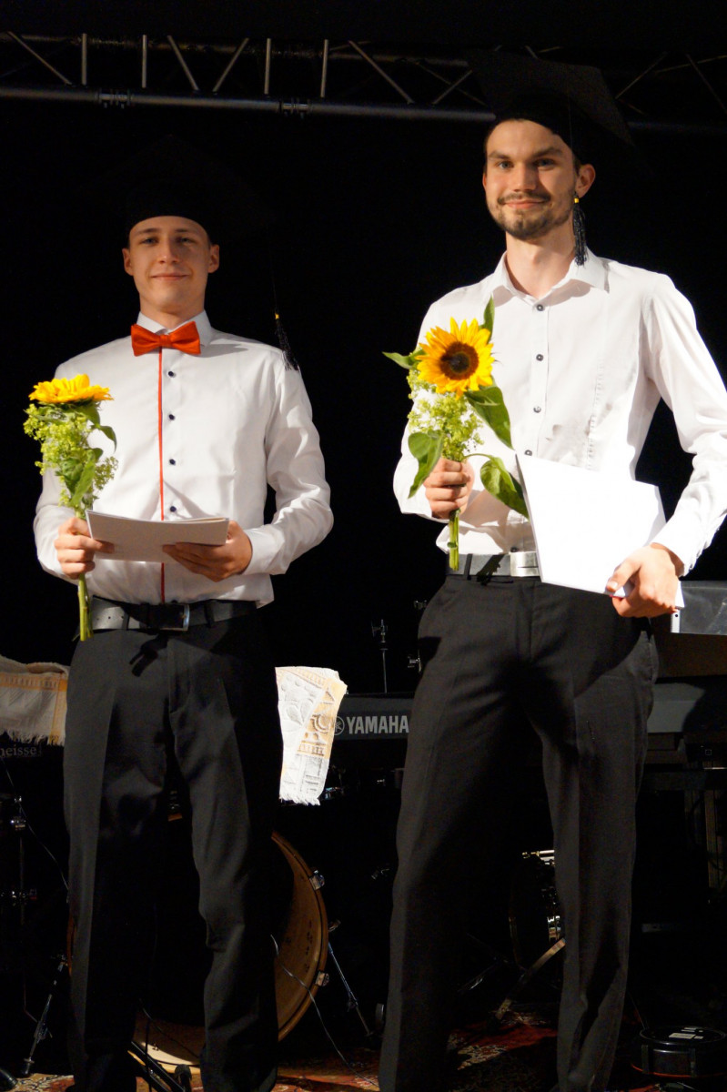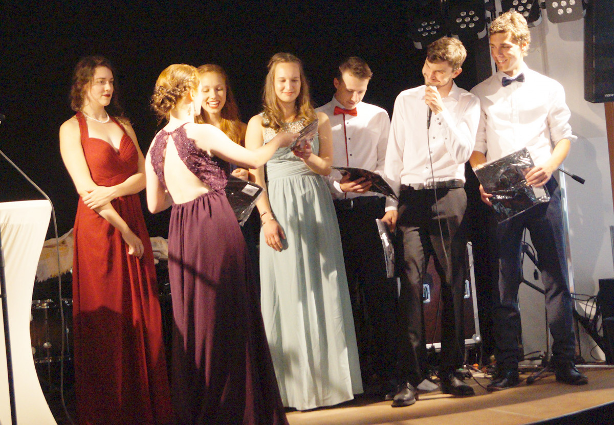 Neben den vielen gesprochenen Worten, unterhaltsamen Beiträgen, rundete ein Theaterstück, in dem die Pädagog_innen die Schüler_innen in all ihrer Vielfalt darstellten, das Programm ab. Wolfram Böhme als Schulleiter, gibt den Abiturient_innen folgende Gedanken mit auf den Weg: »Für Euch alle Sieben wünsche ich mir, dass Ihr in Euch pflegen und in die Welt tragen möget, was Euch als Persönlichkeiten schon an unserer Schule ausgezeichnet hat: Unerschrockenheit und Aufrichtigkeit, Offenheit und Streitbarkeit, Tiefgründigkeit und Lebensfreude, Inspiration, Humor und Charme …«.