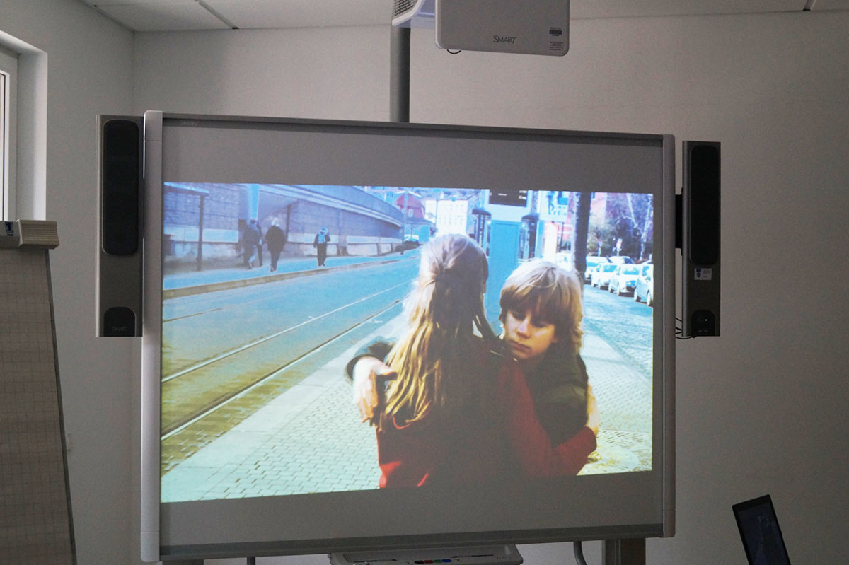 Am ersten Projekttag schauten die 60 Schüler_innen den Film jedoch ohne den Schluss zu sehen, und diskutierten über dessen Inhalt, der sich sehr beschäftigte – wie sie bei der Übergabe berichteten. Anschließend wurden in sechs Gruppen alternative Enden gedreht, wofür die Schüler_innen selbst Drehbücher schrieben und alle nötigen Verantwortlichkeiten (wie Cutter, Lichttechniker, Szenenbilder, Schauspieler usw.) selbst festlegten. Auch die beteiligten Pädagog_innen zeigten sich beim Pressetermin sehr beeindruckt von den Ideen, dem Teamgeist und den entstandenen Filmenden der Schüler_innen. “Es ist faszinierend, welche Ergebnisse in so kurzer Zeit entstehen, sehr schön und verschieden”, fassten Suselin Schwedas, Stephanie Sell, Heike Kaßner und Gregor Spangenberg (UniverSaale) gestern ihr Resüme zusammen. Das Projekt vermittelt neben Medienkompetenz auch Sozialkompetenz durch die anspruchsvolle und intensive Gruppenarbeit.
