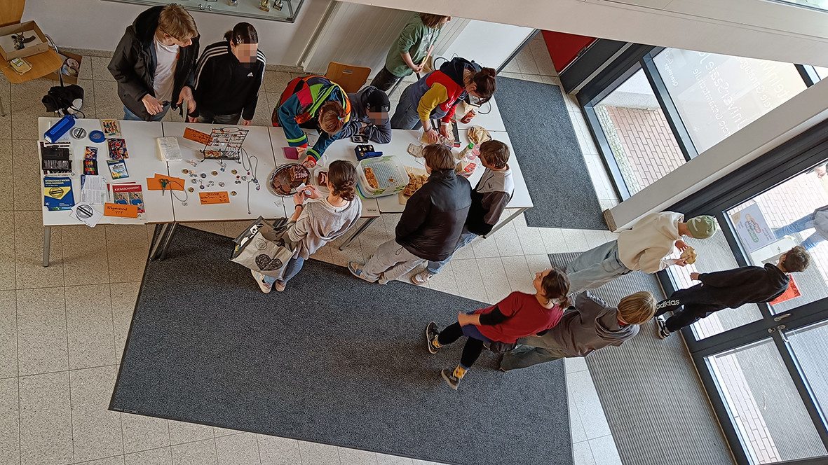 Die Idee für den Basar entstand, weil die Themen Frauenrechte, Gewalt gegen Frauen und der Internationale Frauentag zum Spektrum der AG gehören, mit denen sich in diesem Schuljahr beschäftigt wird. Rund 10 Jugendliche, vom 5. bis zum 9. Jahrgang, sind bei diesem Freizeitangebot der Schule aktiv und haben jede Menge Gesprächsstoff – von Klimagerechtigkeit, über Menschenrechte bis zur aktuellen Wahlthemen. Da ihr Wunsch jedoch auch ist, sichtbar zu sein und an Aktionen teilzunehmen, nahmen sie den »Internationalen Tag gegen Rassismus« zum Anlass, um Mitschüler*innen und Pädagog*innen für ihre Themen zu sensibilisieren – ein Wunsch, den die beiden Leiterinnen der AG, Pädagogin Maria Birnbaum und Schulsozialarbeiterin Sandy Halle, nur zu gerne unterstützen.