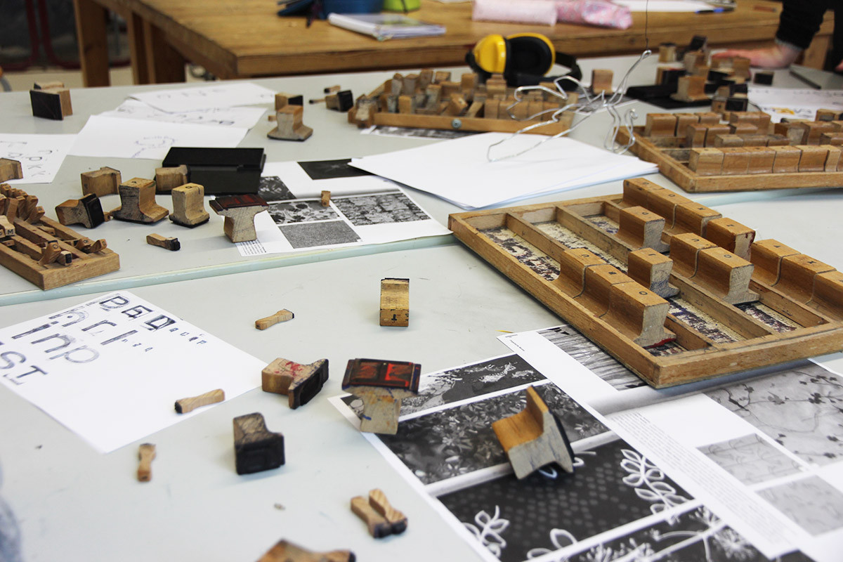 Metallisches Hämmern hallt durch die Flure der UniverSaale, der Geruch von Holzkohle weht über den Schulhof, Schüler in Lederschürzen und ein loderndes Feuer – im Paradies fand vom 23. bis 27.4. unübersehbar die vierte Klangfarben-Projektwoche in diesem Schuljahres statt. Diesmal unterstützte der Jenaer Künstler Robert Krainhöfner (u.a. Dexel-Stipendiat), der sich mit seinen geometrischen Skulpturen einen geachteten Namen gemacht hat, die Stammgruppe III bei der Aufgabe, eine „Ahnengalerie“ aller bisherigen Schulabgänger_innen aus Blech und Eisen zu gestalten. Dafür stanzten sie zum einen die Namen der Ehemaligen auf Blechschilder und schmiedeten zum anderen unter fachkundiger Anleitung Buchstaben, Zahlen und florale Elemente. Wobei das Einprägen der Buchstaben mit dem Hammer in die Blechschilder die körperlich herausfordernde Arbeit war, die viel Kraft erforderte. An Feuer und Amboss war weniger Muskelkraft ausschlaggebend, denn das heiße Eisen war bei einer Idealtemperatur von ca. 850 Grad weich wie Teig, sondern vielmehr Geschick und Geduld, bis sich die Metallstangen in vielen Durchgängen zu den gewünschten Elementen verformt hatten. Am Ende der Projektwoche wurden die Schilder und Eisenelemente an die Betonmauer auf dem Schulhof angebracht. Material für die Abgänger der nächsten Jahre gibt es übriens auch noch :)