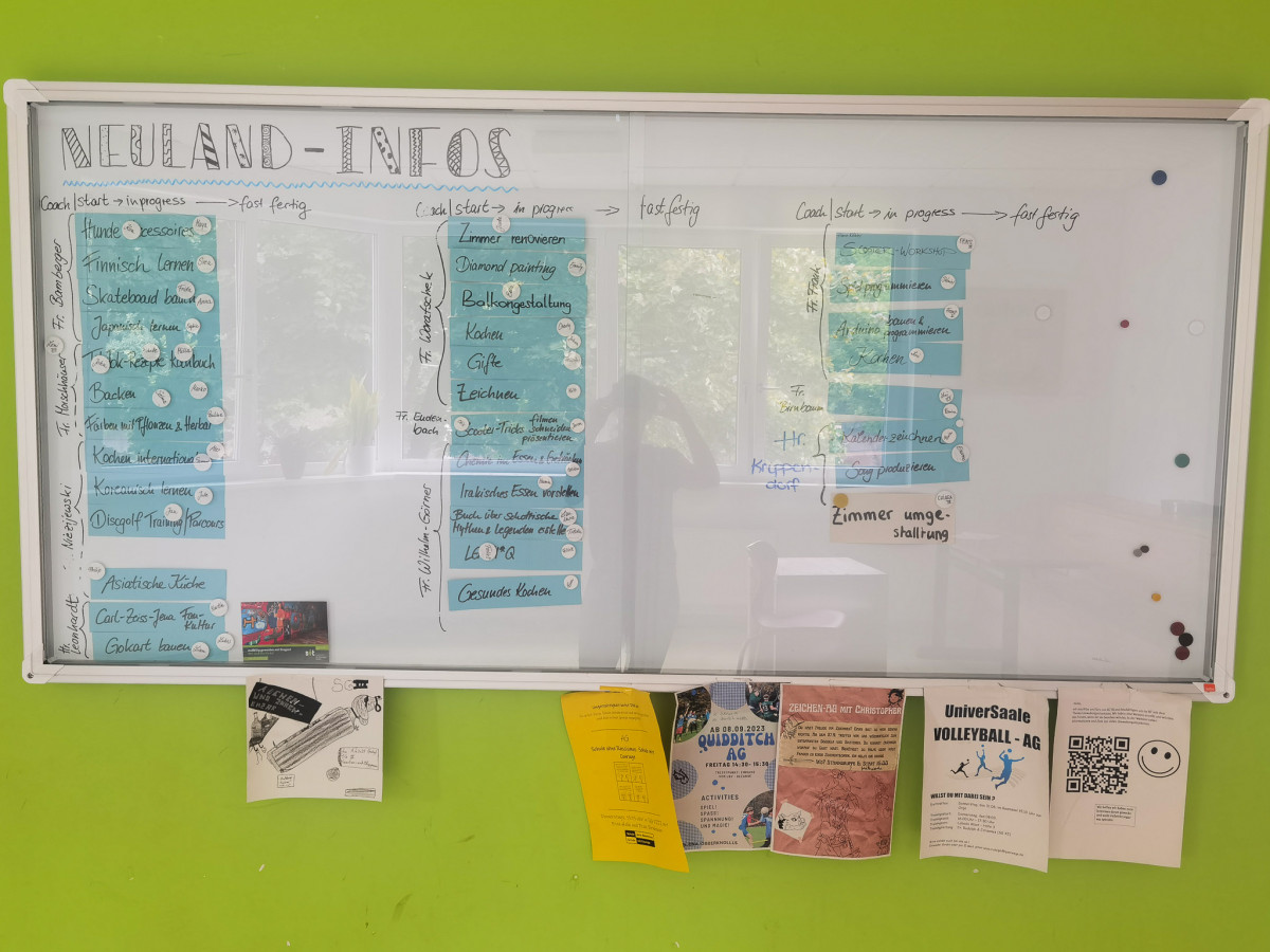 Beim so genannten »Neuland-Fest« am 17. Juni wurden die Projekte der 8er vorgestellt, an denen die Schüler*innen in diesem Jahr im Fach »Neuland« gearbeitet hatten. Über 30 Projekte waren es in diesem Jahr, von A – Wie asiatische Küche über C wie Chemie im Essen und S wie Skateboard bauen bis zu Z wie Zimmer renovieren.