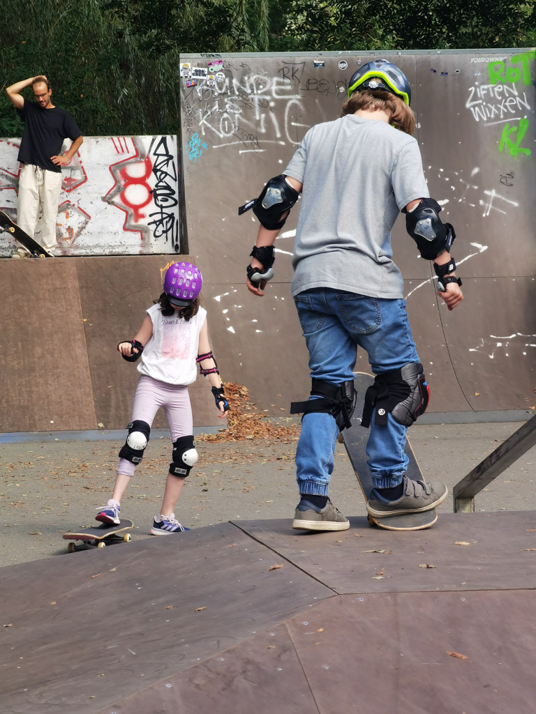 Die Fortschritte, die die Kinder gemacht haben, konnten sich sehen lassen, lobt auch UniverSaale-Lehrerin Swantje Kögler ihre Stammgruppe. Die verschiedenen Rampen durften die Schüler*innen ab dem zweiten Tag auch mit ihren Inlineskates oder Rollern befahren – getreu dem Motto »All wheels are welcome«.