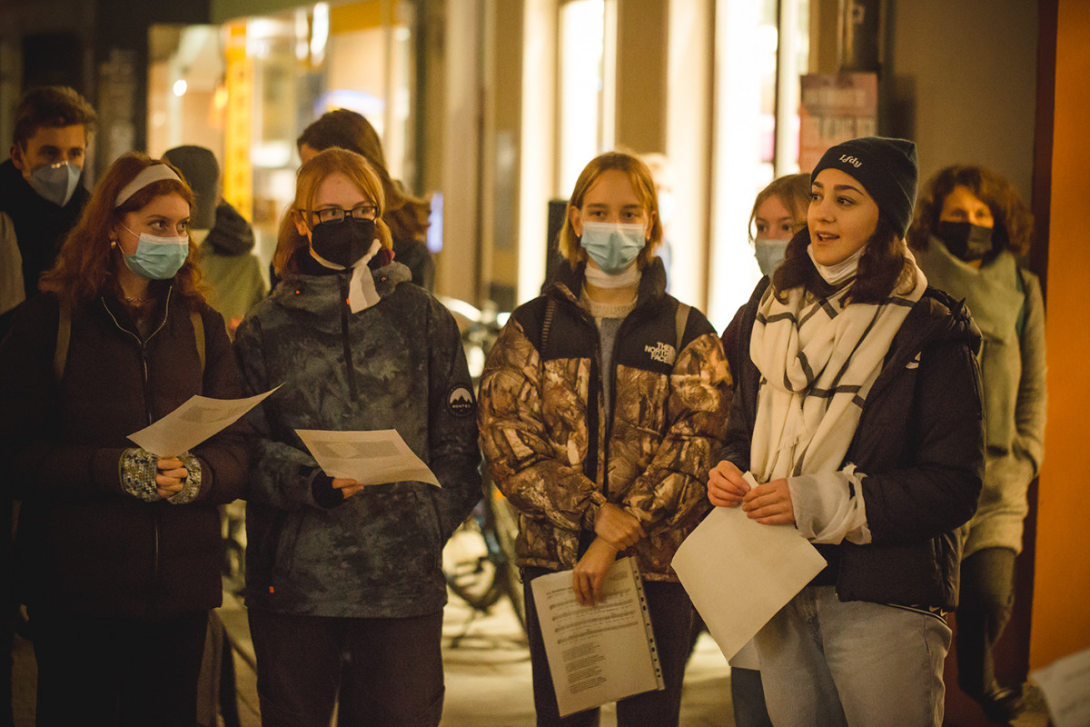 Vor einer Woche haben sich 26 Schüler*innen des Jahrgangs 11 im Rahmen eines Projekts zu Gedenk- und Erinnerungskultur im Geschichtsunterricht am „Klang der Stolpersteine“ beteiligt. Ihre Beiträge in Gedenken an Heinrich Weidinger, Luise Eismann und Gertrud Korte haben sie in den Wochen davor selbst geplant und am 9. November an den Standorten Unterm Markt und Rathausgasse eigenverantwortlich durchgeführt.