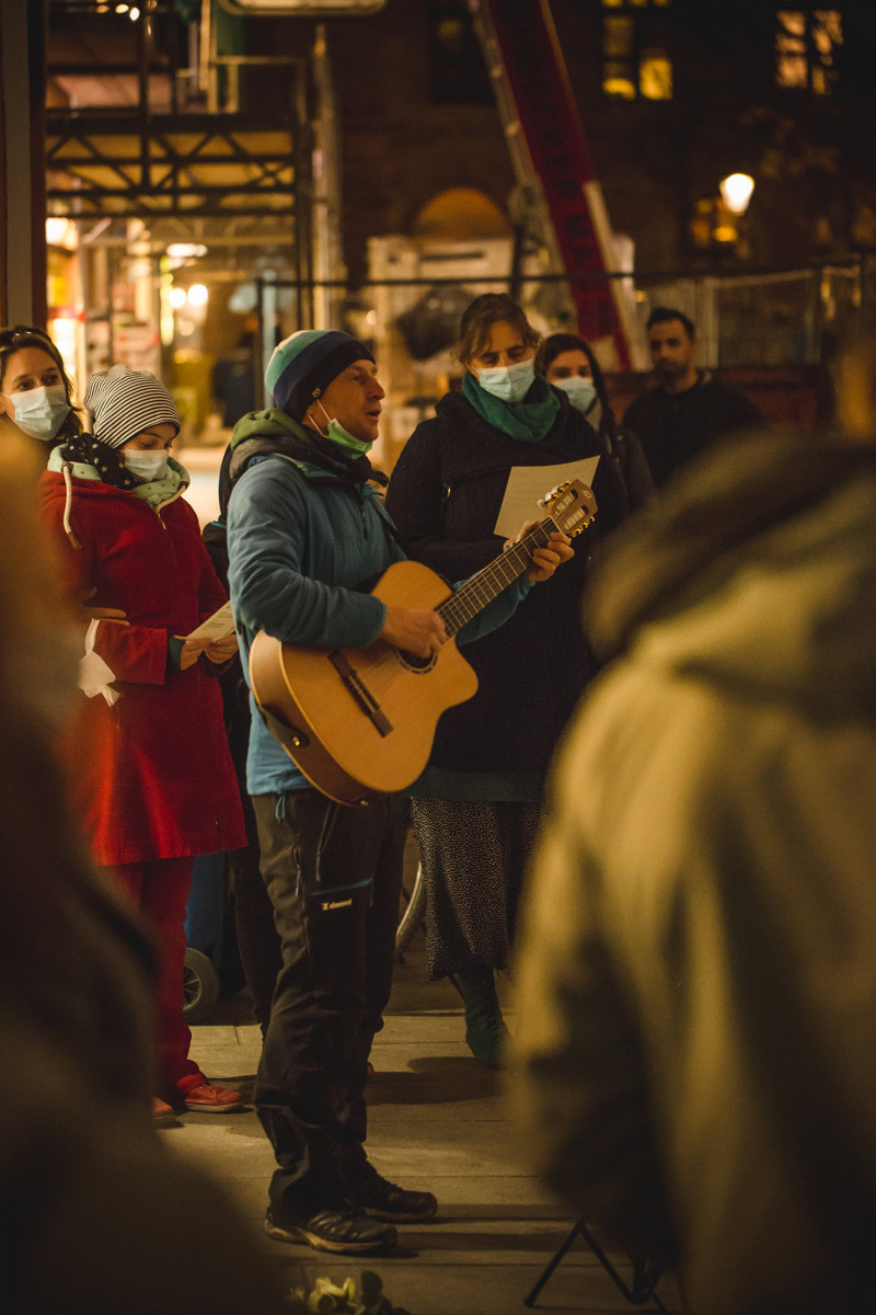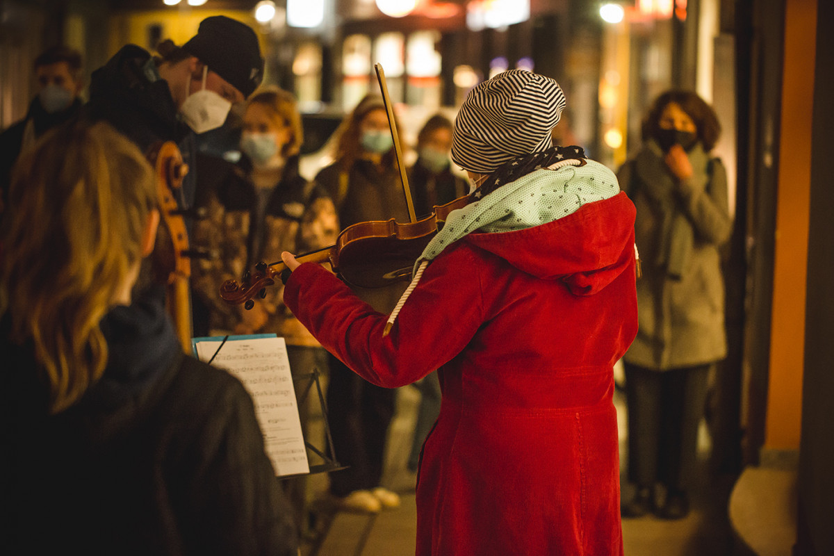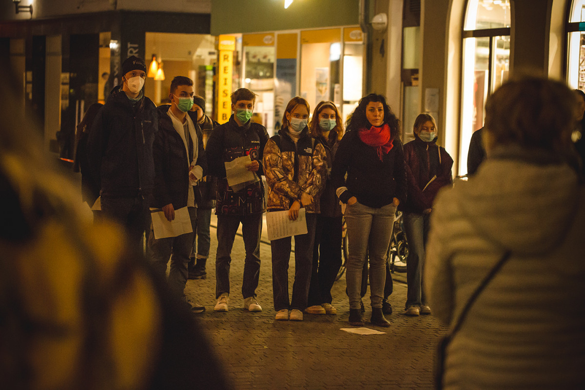 An fast 50 Standorten fanden an diesem Abend klangvolle Gedenkaktionen statt. Unter anderem in der Kochstraße, der ehemaligen Kinderklinik der FSU Jena. Hier hatten sich Schüler*innen das Carl-Zeiss-Gymnasium mit dem schweren Thema Kindereuthanasie und den Vertrickungen des damaligen Leiters Jussuf Ibrahims auseinandergesetzt und sehr bewegende Texte vorgetragen. Bespielt wurde dieser Gedankort von Musikern der Saitensekte.