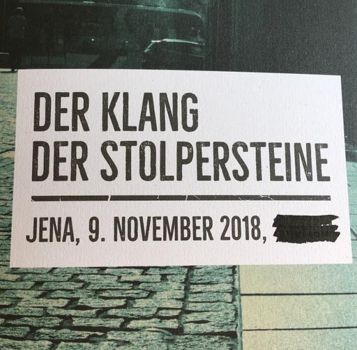 Im letzten Geschichtsprojekt haben sich die Schüler_innen des 11 Jahrgangs der UniverSaale mit den Stolpersteinen als einer Form des Gedenkens befasst. Stolpersteine sind vom Künstler Gunter Demnig in den Boden verlegte Messingtafeln vor dem letzten selbstgewählten Wohnort jüdischer Bürger, die dem Holocaust zum Opfer gefallen sind. Mittlerweile gibt es sie in 21 europäischen Ländern. Auch wir wollen als “Schule ohne Rassismus – Schule mit Courage” einen Beitrag leisten und die Veranstaltung am 9. November, welche in Jena an die Opfer des Holocaust erinnert und den Namen „Klang der Stolpersteine“ trägt, unterstützen. Ab 17:45 Uhr werden an 30 verschiedenen Orten in Jena unterschiedliche Musikensemble der in den Tod getriebenen, jüdischen Mitbürger gedenken. Unsere Schüler_innen werden an 12 verschiedenen Stolpersteinen kurze Biographien der betroffenen Personen vortragen. Außerdem haben sie sich kreativ mit den verschiedenen Schicksalen auseinander gesetzt und stellen selbstverfasste Gedichte, fiktive Tagebucheinträge, gezeichnete Porträts und eine Form-Collage vor. Interessierte Schüler_innen und Eltern sind herzlich eingeladen, diese Veranstaltung durch ihren Besuch zu unterstützen. Nähere Informationen zu den Orten der Stolpersteine und den verschiedenen Musikensemble finden sich im Flyer der Veranstaltung Klang der Stolpersteine .