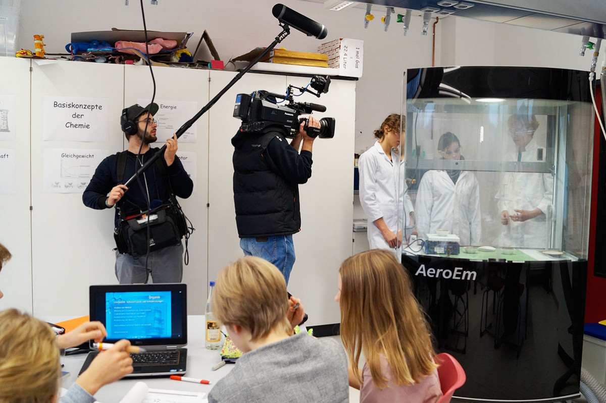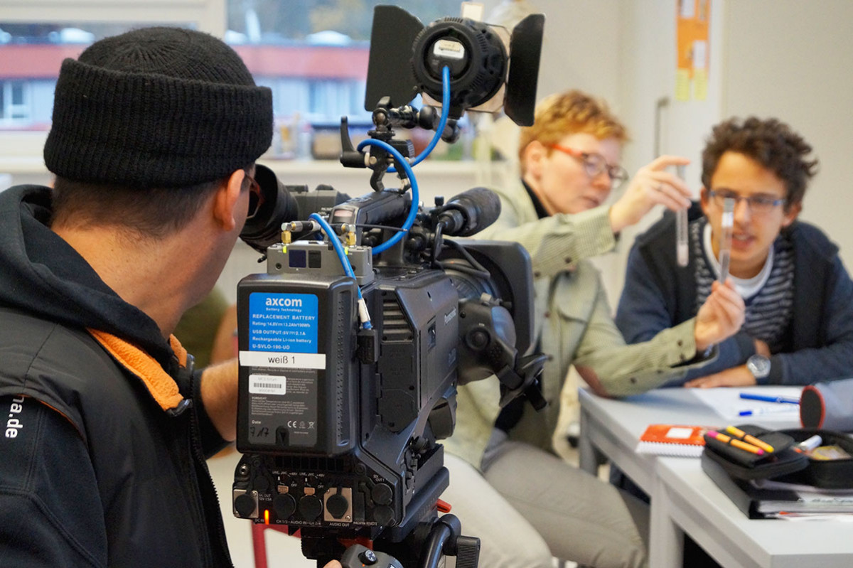 Am 16. November war der MDR zu Gast an der UniverSaale, um ein für unsere Schule typisches Unterrichtsformat „Projektzeit“ für einen kurzen Beitrag im MDR Thüringen Journal zu filmen. Sie besuchten die Stammgruppe IX (Doppeljahrgang 9/10) die sich an diesem Tag fächerübergreifend mit dem Thema „Erdöl“ beschäftigten. Im Chemiekabinett nahmen sie auf, wie unsere Schüler sich mit einer Mischung aus Selbststudium, Experiment und Modellbau Wissen aneigneten. Diese hohe Schüler-Eigenaktivität, die Lehrkraft als Begleiter_in und die Möglichkeit, einen Gegenstand aus unterschiedlichen Perspektiven in verschiedenen Modi zu begegnen sind Versatzstücke, welche die Resonanzpädagogik kennzeichnen. Diese beschreibt eine Form des Lernens, das individualisiert und nachhaltig gestaltet ist und eine Wechselwirkung aller Personen, die am Bildungsprozess beteiligt sind (Schüler_innen, Pädagog_innen etc.) beinhaltet. Wenn also Schule zum Resonanzraum wird und “knistert”, wie der Soziologe Hartmut Rosa sagt, gelingt Lernen. In Jena forscht auch der Wissenschaftler Jens Beljan zu diesem hochspannenden und aktuellen Thema. Der Erziehungswissenschaftler und Soziologe stand dem MDR Rede und Antwort, den er plant, anhand der UniverSaale zu erforschen, wie Theorie der Resonanzpädagogik in der Praxis umgesetzt wird bzw. umgesetzt werden kann.