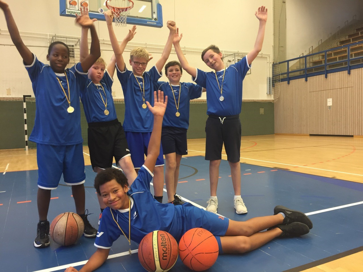 unseren Schüler_innen Paul (SG II), Julian, Dominik, Luca und David (SG I) und Loic (SG IV). Sie haben heute souverän und trotzdem hart umkämpft beide Spiele im Basketball Stadtfinale Jugend trainiert für Olympia gewonnen, alles gegeben und sich auf jeden Fall eine Anerkennung verdient! Sie sind somit eine Runde weiter und treten im Ostthüringer Finale im Januar an.