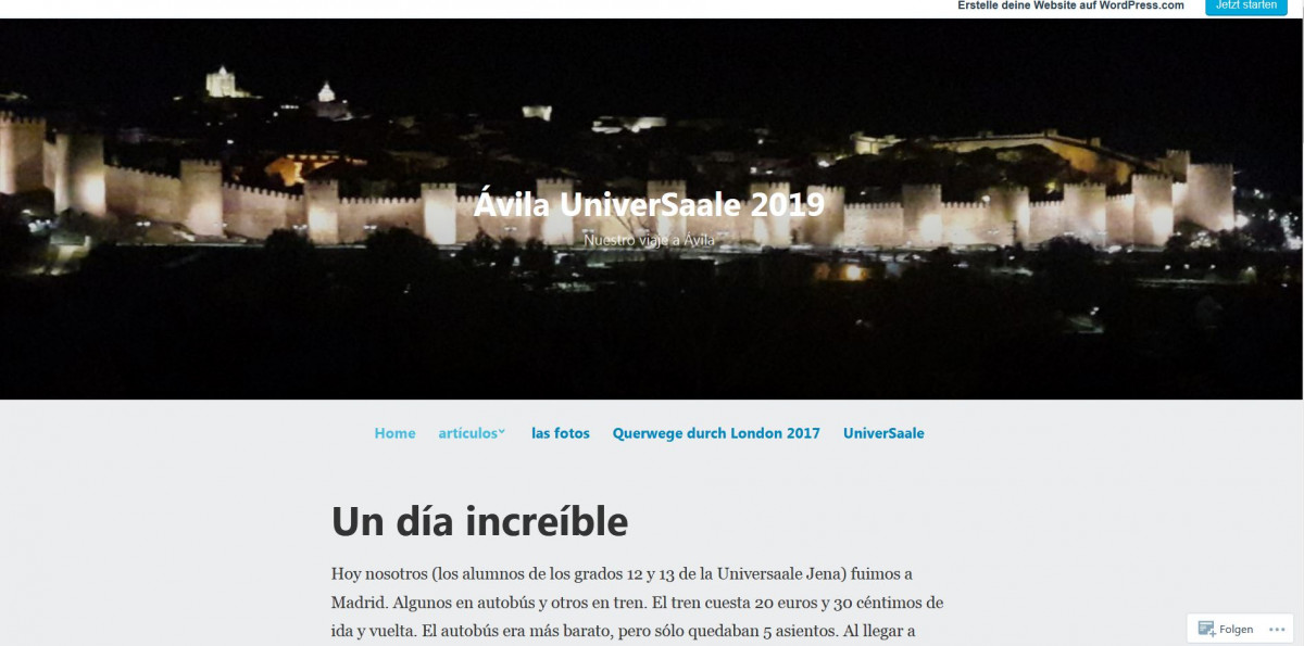 Der 12. und 13. Jahrgang befindet sich gerade auf großer Spanienreise. Bei ihrer Sprach- und Bildungsreise wohnen die 35 Schüler*innen bei Gasteltern in Ávila, besuchen vormittags eine Spanischchule und unternehmen danach Exkursionen. Los ging es am 14. Oktober, für die meisten per Flugzeug. Noch bis Freitag werden die Schüler*innen Land und Leute kennenlernen, durch Kathedralen und Museen streifen und viele neuen Vokabeln sammeln. Wer mehr über die spannende Reise erfahren will, kann den Schüler*innen auf ihrem selbst geschriebenen Blog folgen: