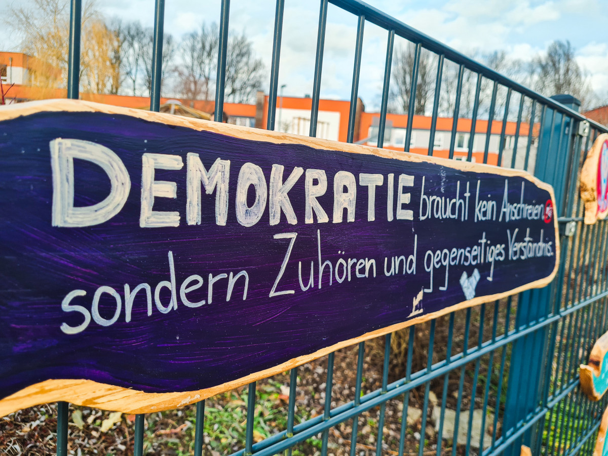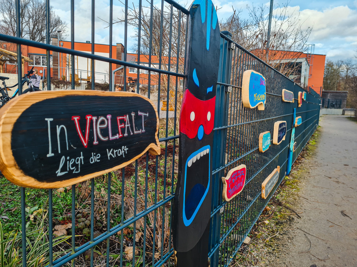 Heute wurden über 30 Holzschilder am Zaun unseres Schulhofs im Paradies angebracht, mit toller Unterstützung einiger Grundschüler*innen. Die Schilder in Form von Sprechblasen entstanden im letzten Herbst, als wir mit QuerWegler*innen sowie Schüler*innen der Demokratie-AG der UniverSaale Statements zum Thema Demokratie, Gerechtigkeit und Vielfalt gesammelt haben. Viele kreative Köpfe und Hände waren daran beteiligt – unser Zaun soll damit bunt und vielstimmig viele Spaziergäng*innen zum Nachdenken anregen.