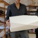 Die Möbel-Werkstatt bekam ebenfalls fachliche Unterstützung. Ihnen stand der Künstler Robert Krainhöfner zur Seite, der sie beim Bau von Modellen und einem Hocker-Prototypen in Leichtbauweise unterstütze. Dabei wurde mit verschiedenen Materialien experimentiert und Fertigkeiten ausprobiert. Am Anfang stand die Überlegung, aus den QuerWege-Quadraten des Logos funktionale Möbelstücke zu bauen. Im Prozessverlauf kam die Idee auf, einen Hocker, der durch gefaltete Flächen das „X“ – als römische Ziffer für das zehnjährige Jubiläum – abbildet, zu konstruieren. Die Leichtigkeit und Stabilität des Hockers überzeugte bei der Präsentation sehr.