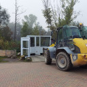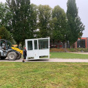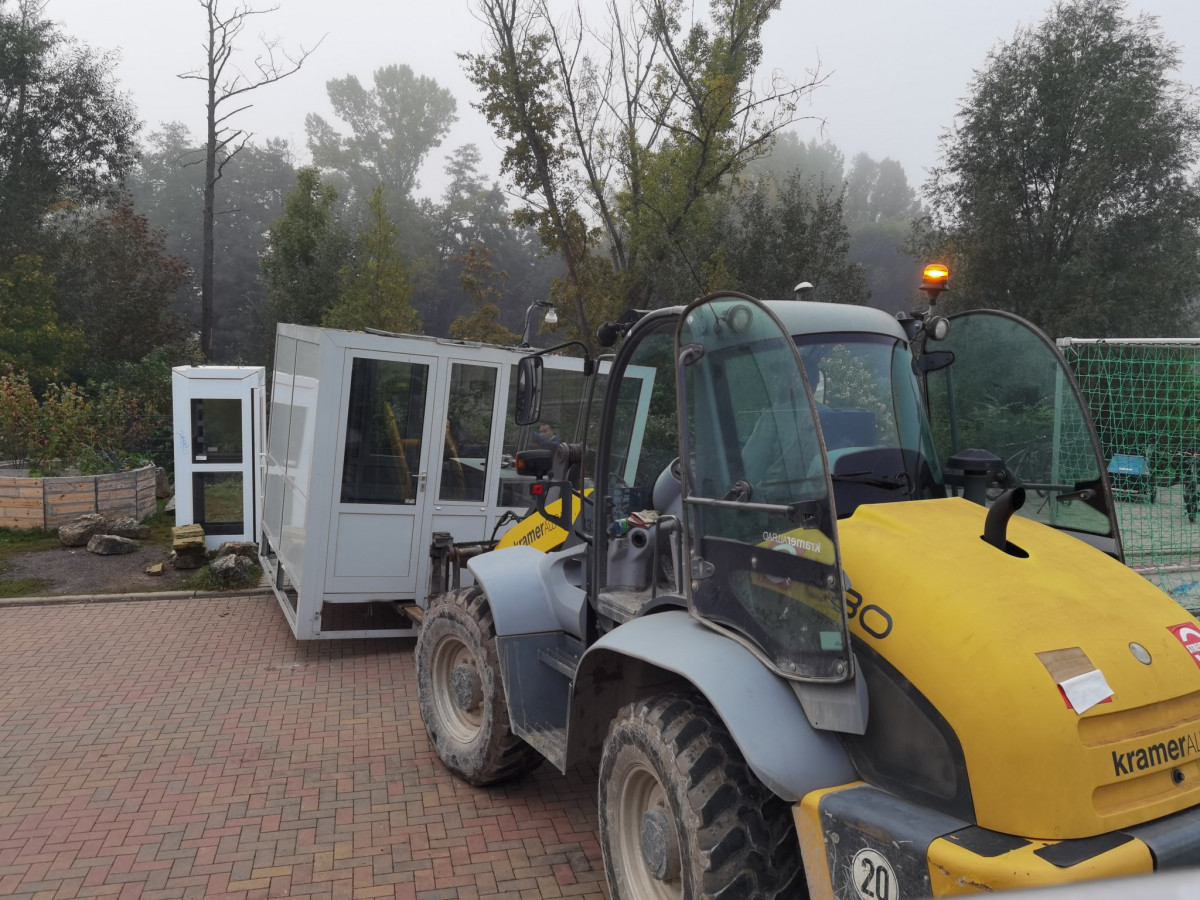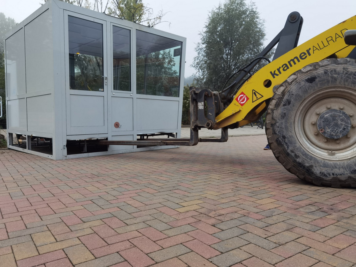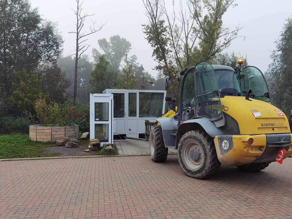 Am 15.9. kam eine ungewöhnliche Fracht auf dem Schulhof im Paradies an. Mittels Radlader wurde eine rund eine Tonne schwere Sprecherkabine von der Haupttribüne des alten Stadions geliefert. Da das Stadionareal »Ernst-Abbe-Sportfeld« aktuell umgebaut wird, wird diese nicht mehr gebraucht. Klar, dass wir uns dieses Stück Fußballgeschichte gerne sichern wollten :)