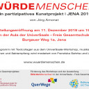 Am 11. Dezember findet eine Ausstellungseröffnung an der UniverSaale statt, die Teil des partizipativen groß angelegten Kunst-Projekts „Würdemenschen“ ist. Gezeigt werden Selbstportraits der Schüler*innen des 12. und 13. Jahrgangs, die während eines Workshops vom 2.- 13. September im Fach Ethik/Religion mit dem Künstler Jörg Amonat in der Schule entstanden. Der Berliner Bildhauer hat das einzigartige Projekt ins Leben gerufen und 2019 an neun verschiedenen Orten in Jena durchgeführt, die für Stationen des Lebensbogens stehen.