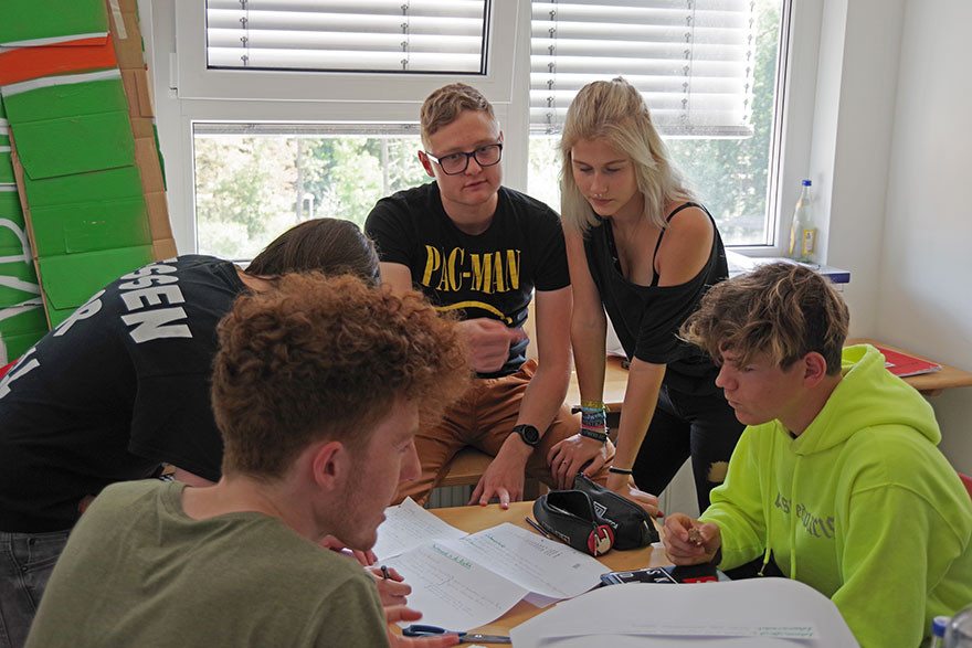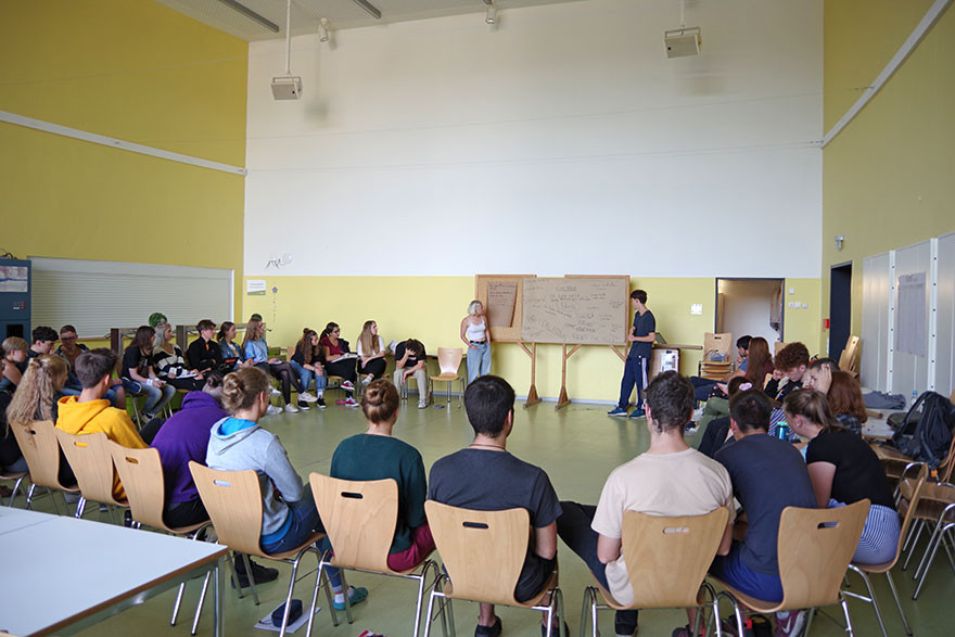 Die 35 Schüler*innen sind zu Beginn der zwei Projektwochen über Fotos ins Gespräch darüber gekommen, wie die Welt mit ihren oft nicht hinterfragten Alltäglichkeiten durch die Brille der Würde aussieht. Sie beschäftigten sich zudem sehr intensiv mit philosophischen Texten von Friedrich Schiller und zeitgenössischen Autoren. Nach den Textanalysen erfolgte ein kreativ-gestalterischer Teil, bei dem es um die Beantwortung der drei zentralen Fragen des Projekts „Würdemenschen“ ging, die Jörg Amonat an allen Projektorten stellt und bearbeitet: