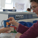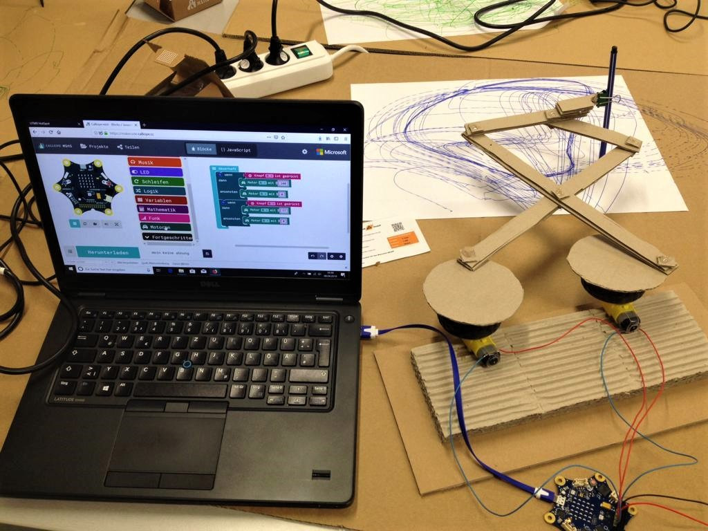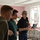 Wie zum Beispiel auch der Workshop »Einen Malroboter bauen«. Dieser findet außerhalb unseres Schulgebäudes statt. Alle Teilnehmenden durften in der Buchaer Straße 1 die Jenaer Antriebstechnik (JAT) besuchen und dort aus verschiedensten Materialien einen Roboter austüfteln. Am Ende konnte er ein bemerkenswertes Kunstwerk malen.