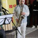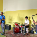 Abrundend agierten hernach in perfekter Harmonie die beiden Workshops »Schauspielmusik« und »Dada Vincimincipinci« (ein Theaterworkshop) unter der Regie von Max Kubitscheck und der Anleitung von Frau Hädrich, Frau Gude und Herrn Lätsch. Den zahlreichen Zuschauer_innen, welche sich aus Schüler_innen, Eltern und Pädagog_innen zusammensetzten, wurde ein dadaistisches Schauspiel besonderer Qualität geboten. Unter massivem Einsatz weißer Farbe und dem schauspielerischen Talent der Performance-Gruppe entstand ein bleibender Eindruck bei allen Zuschauenden. Begleitet von begabten Nachwuchsmusiker_innen verloren wir uns in der »Weißheit« – Danke dafür!