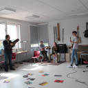 Herr Lätsch erzählte, während er sich Süßigkeiten bei der Pressestelle stibitzte, dass er mit seiner Schauspielmusikgruppe ein Stück für die Theatergruppe »Dada Vincimincipinci« einübt. Auf unvorhergesehene Änderungen im Tagesablauf reagierten die Teilnehmenden souverän und voller Schaffenskraft und konnten so dem kreativen Chaos eine beachtlich effektive Struktur verleihen. Auf das Resultat der kommenden Tage dürfen wir alle gespannt sein.