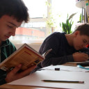 Handwerklich tobten sich auch die Teilnehmer_innen im Workshop « Metallplastiken schweißen« aus. In einer Zusammenarbeit mit Vacom entstanden hier faszinierende Skulpturen, welche nach einer kurzen Anleitung selbstständig geschweißt wurden. Auch diese Kunstwerke sind morgen zu sehen. Genauso wie die vielfältigen Werke der Portraitzeichner_innen. Diese begaben sich gestern außerdem auf eine inspirierende Exkursion nach Erfurt, um die Portraits des Künstlers Lucas Cranach der Ältere zu bestaunen.