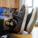 Auch die Graffiti-Gruppe begann mit einer Vorstellungsrunde ihrer eigenen Skizzen vom Vortag. Mit diesen Skizzen wollen sie die Bande unseres Bolzplatzes auf dem Schulhof verschönern. Geleitet wird die Aktion von Sven Morawitz. Er ist ein professioneller Graffitiartist mit dem Künstlernamen »MonarchOhne« und probiert sich diese Woche zum ersten Mal als Lehrer aus.