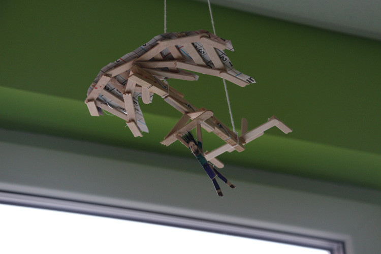 Mit Entwürfen haben sich auch die Teilnehmer_innen des Workshops »Flugmodelle« in der Imaginata beschäftigt. Jedoch haben diese ihre eigenen Flugmodelle und Raketen gebaut. Bereits am Montag flogen schon die ersten Modelle durch die dortigen Hallen. Die größten Herausforderungen waren für die Schüler_innen Geduld, Feingefühl, Feinmotorik und Ausdauer. Es wäre aber gelacht, wenn unsere Schüler_innen diese nicht bewältigen können.