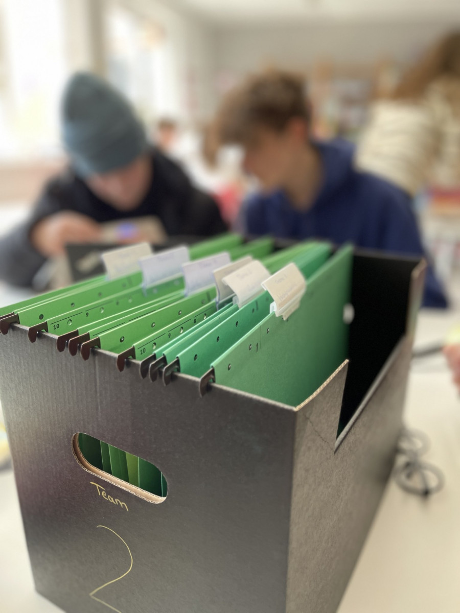 In fünf Gruppen aufgeteilt ging es dann in den nächsten Stunden darum, sich durch verschiedene Wissenseinheiten zu arbeiten, um zum Abschluss jeder Einheit einen Code zu enthalten. Die Themen, zu denen die Lehrerinnen prall gefüllte »Beweisboxen« mit verschiedenen Materialien, Texten und Quellen vorbereitet hatten, waren: