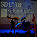 Nach unserer 6–stündigen und komplett pannenfreien Bahnfahrt haben wir endlich unser Ziel erreicht. Bereits am Sonntagnachmittag trafen wir auf die Gruppen aus den anderen Bundesländern. Gemeinsam zogen wir in einer kleiner politischen Demo von der Jugendherberge zum Opernhaus Kiel. Und hier durfte bereits in einem künstlerischen Auftakt gemeinsam improvisiert werden…. was immer wir da taten – Wir hatten Spaß! Nach dem formellen aber wirklich gelungenen Festivalauftakt im Opernhaus, könnten wir gleich am Sonntagabend das erste Stück sehen können. Schleswig-Holstein eröffnete mit einer Inszenierung, die uns auch noch Stunden später anregende Diskussionen verschaffte.