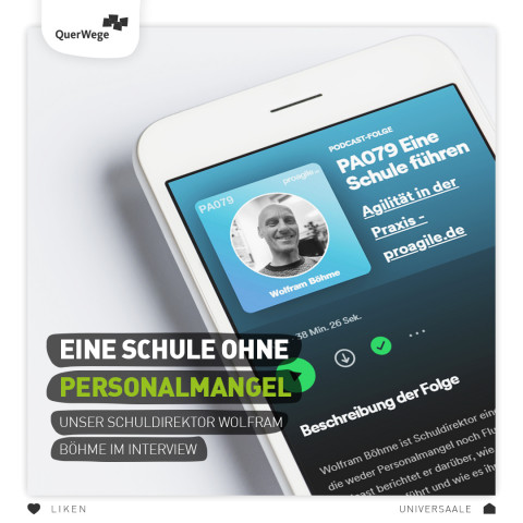 Es klingt fast zu schön um wahr zu sein, was das Team der Freien Gesamtschule UniverSaale mit seinem Schulleiter Wolfram Böhme geschafft hat: Eine agile Führungskultur zu etablieren, welche die Voraussetzungen dafür schafft, die Unterschiedlichkeit im Kollegium als Chance zu sehen und zu nutzen und damit ein hohen Grad an Zufriedenheit zu schaffen. In der neuesten Podcastfolge von proagile.de erzählt Wolfram Böhme, seit 13 Jahren Schuldirektor, dem Host Christian Müller wie die UniverSaale es geschafft hat, nach der Gründungsphase der freien Schule, die damals deutschlandweit einmalig war, sowohl die Gründer*innengeneration zu halten als auch neue Kolleg*innen, die mit dem Wachstum der Schule hinzugewonnen wurden, zu einem innovativen, stabilen Team zusammen zu bringen und zu halten.