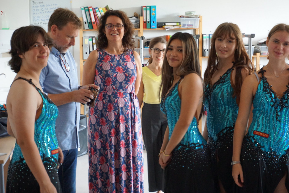 Aus dem Stammgruppenraum XIII dringt beschwingte Musik. Mit taktkräftiger Unterstützung von unserem Schüler Pawel und dem Tanzlehrer Olaf Hartwig wird hier Salsa geübt. Am Freitag sind drei 15minütigen Aufführungen zu erwarten. Auch unsere Gäste dürfen sich beim freien Salsa–Tanzen dazugesellen. (le)