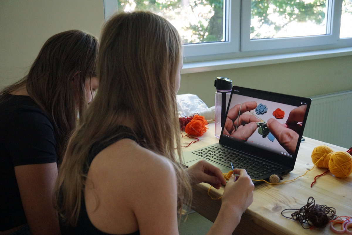 Stricken ist kein Hobby, es ist eine Lebenseinstellung! – Das versuchen die Teilnehmer*innen jetzt im Strick-Workshop für sich zu entdecken. Trotzdem, dass viele Anfänger dabei sind, haben sich alle ein Ziel gesetzt: Hausschuhe, Kissenbezüge oder einfach Stricken lernen. Aber es ist nicht das Einzige, was man dort lernen kann: Einige versuchen sich auch am Häkeln. (an,lo)