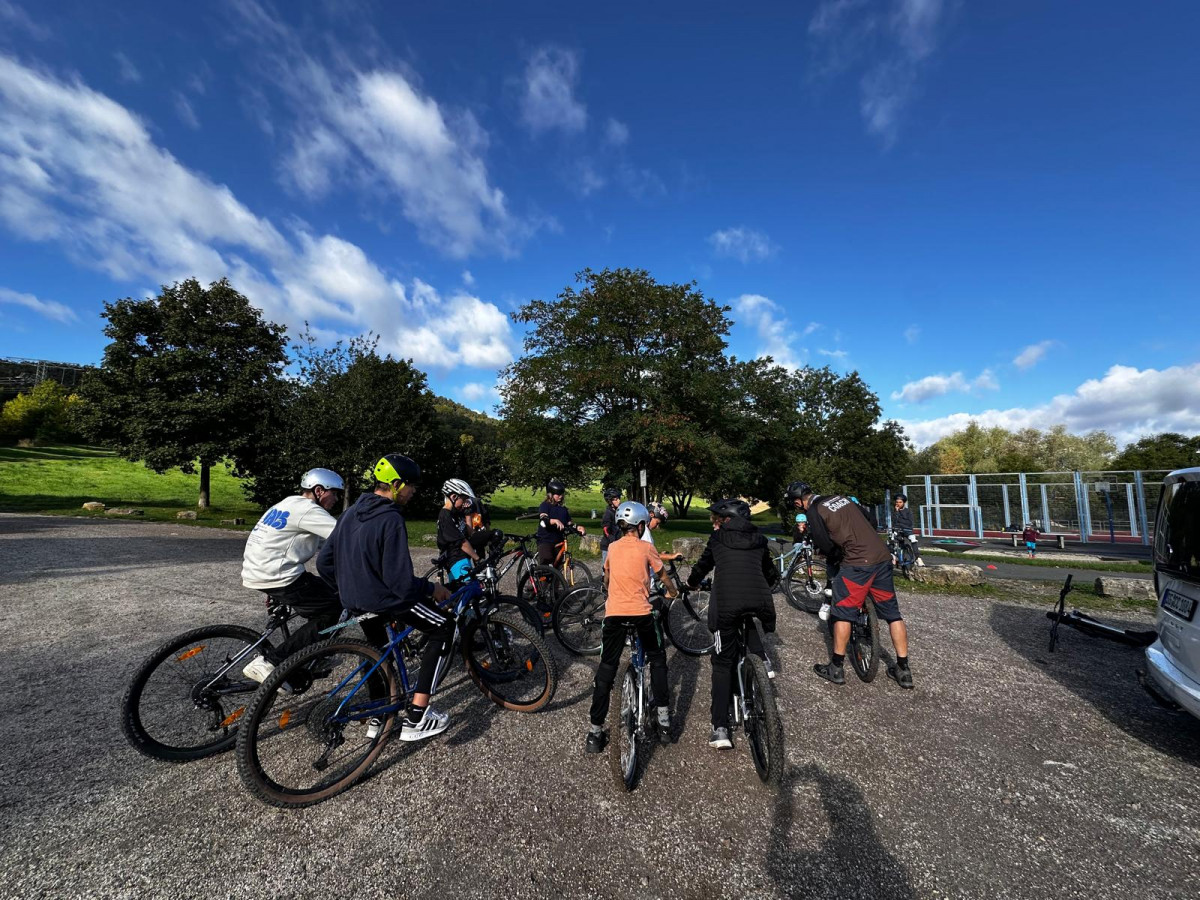 Die Mountainbiker*innen machen in der Projektwoche eine Street Tour durch Jena, wobei sie sicherer fahren, sowie Tricks mit ihrem Fahrrad lernen. Dazu gehört Treppen herunter zu fahren, Wheelies und sogar Sprünge. Alle haben Spaß daran, Mountainbike zu fahren und haben Anfang der Woche sogar Besuch von einem Techniktrainer bekommen, von dem sie Neues lernen konnten. (fe)